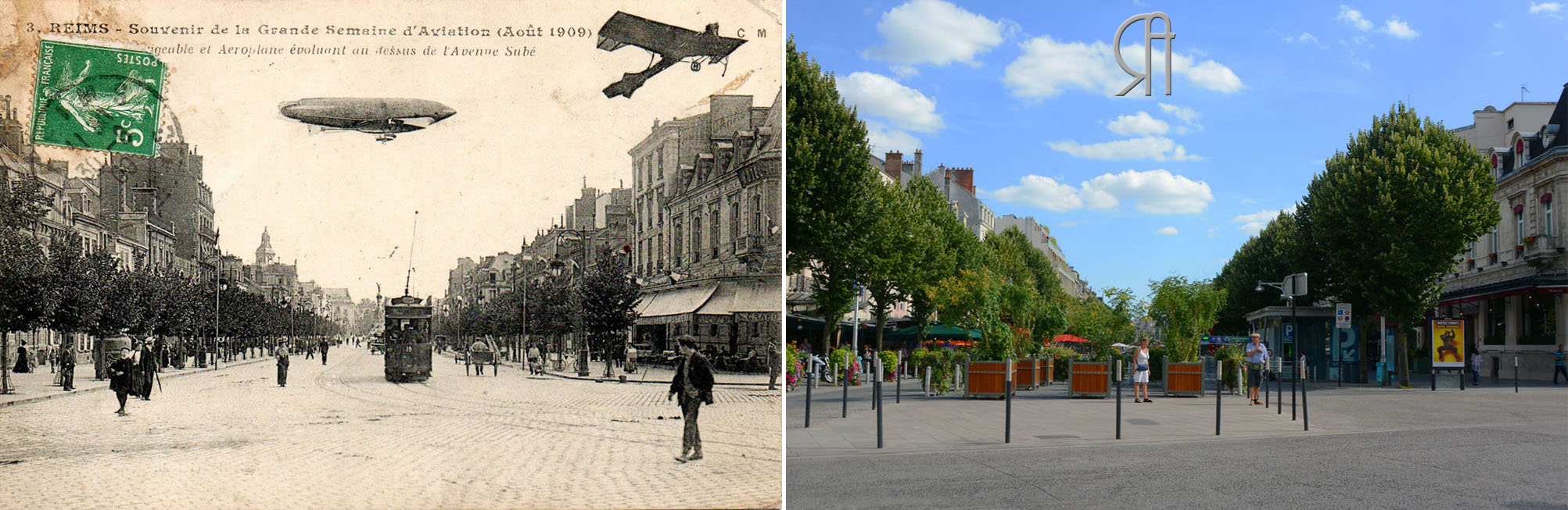 Bien sûr, les avions ne volaient pas au dessus de la ville mais les imprimeurs, sans se servir de PhotoShop, savaient bricoler leurs photographies pour cette grande occasion !
