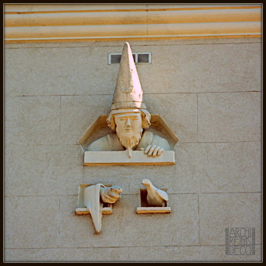 En savoir plus sur cette sculpture de Renonciat : https://www.reimsavant.documentation-ra.com/place-des-six-cadrans-ou-place-des-loges-coquault/